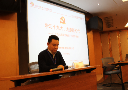 在這次學(xué)習(xí)貫徹黨的十九大精神座談會上,首先由副總裁胡燦明導(dǎo)讀題為“學(xué)習(xí)十九大 走進(jìn)新時代”的十九大報告核心內(nèi)容;隨后各參會人員踴躍討論,積極發(fā)言,分享了對十九大會議報告的學(xué)習(xí)心得和體會,紛紛表示將不忘初心,為公司發(fā)展壯大添磚加瓦。