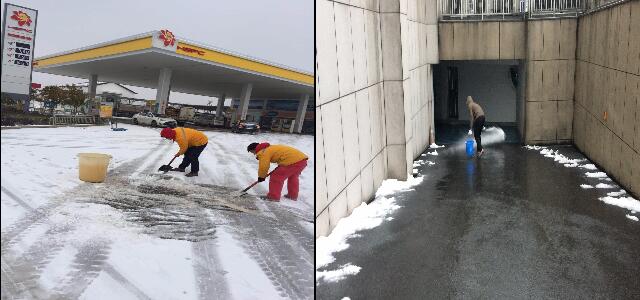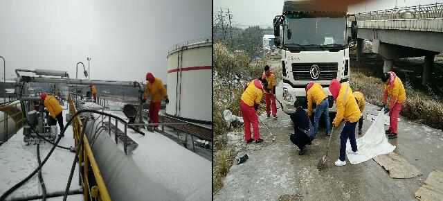 寒風中,油庫一線員工為維護正常卸、發(fā)油而冒雪工作,檢查設(shè)施設(shè)備狀態(tài);物流車隊司機們風雪無阻,排除困難,按時按點將油品安全送達客戶、送到各站點;各個加油站基層員工通力合作,掃除油站積雪,保障油站進出通道順暢通行和行車安全;總部行政、物業(yè)人員也及時給辦公樓前坪進行掃雪、除冰,為行政辦公工作保駕護航。